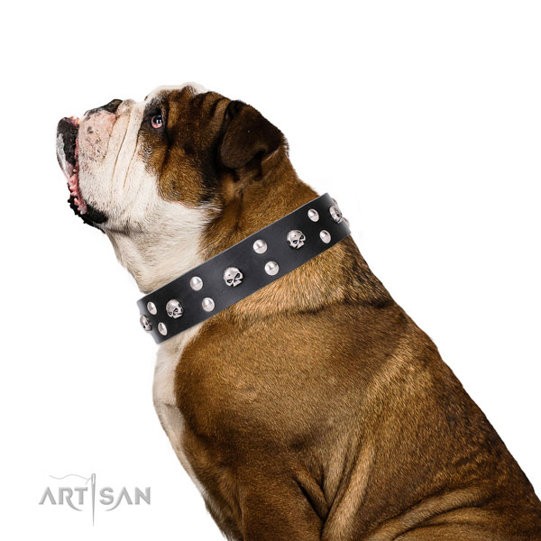 Leather English Bulldog collar for fashionable look of your favourite pet